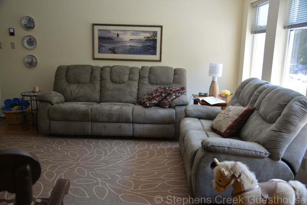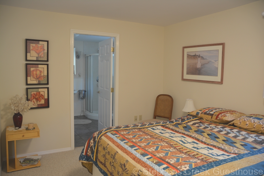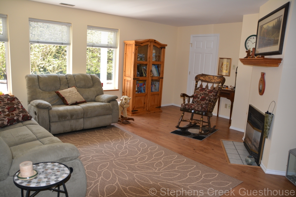Located in the main house, a cozy and comfortable private suite, featuring a bedroom, four piece bathroom, and a spacious sitting room.